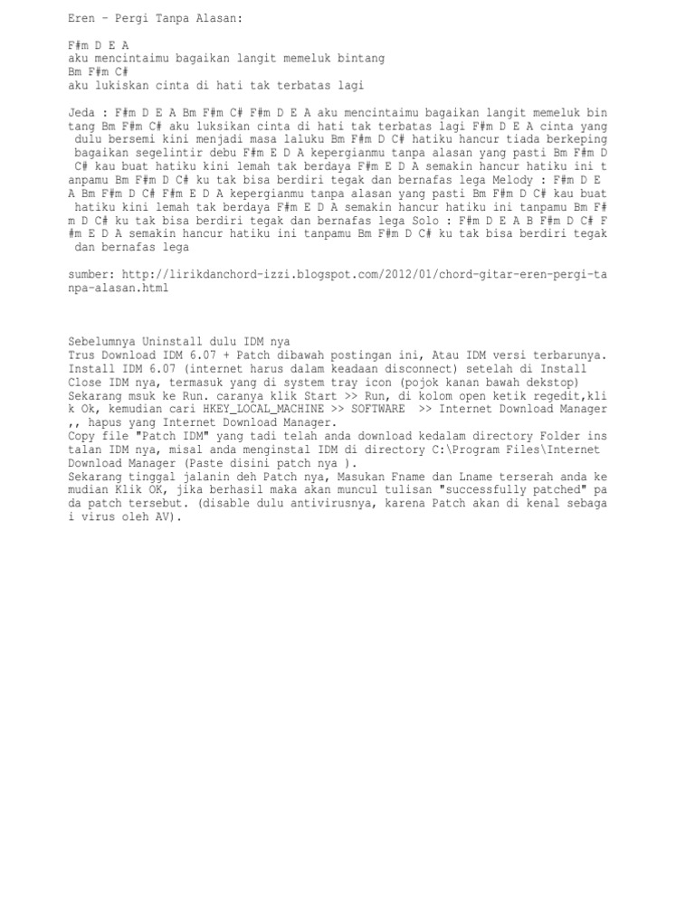 Lirik Dan Chord Lagu Pergi Tanpa Alasan Eren